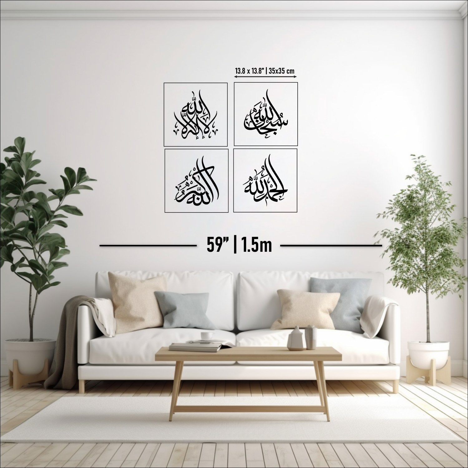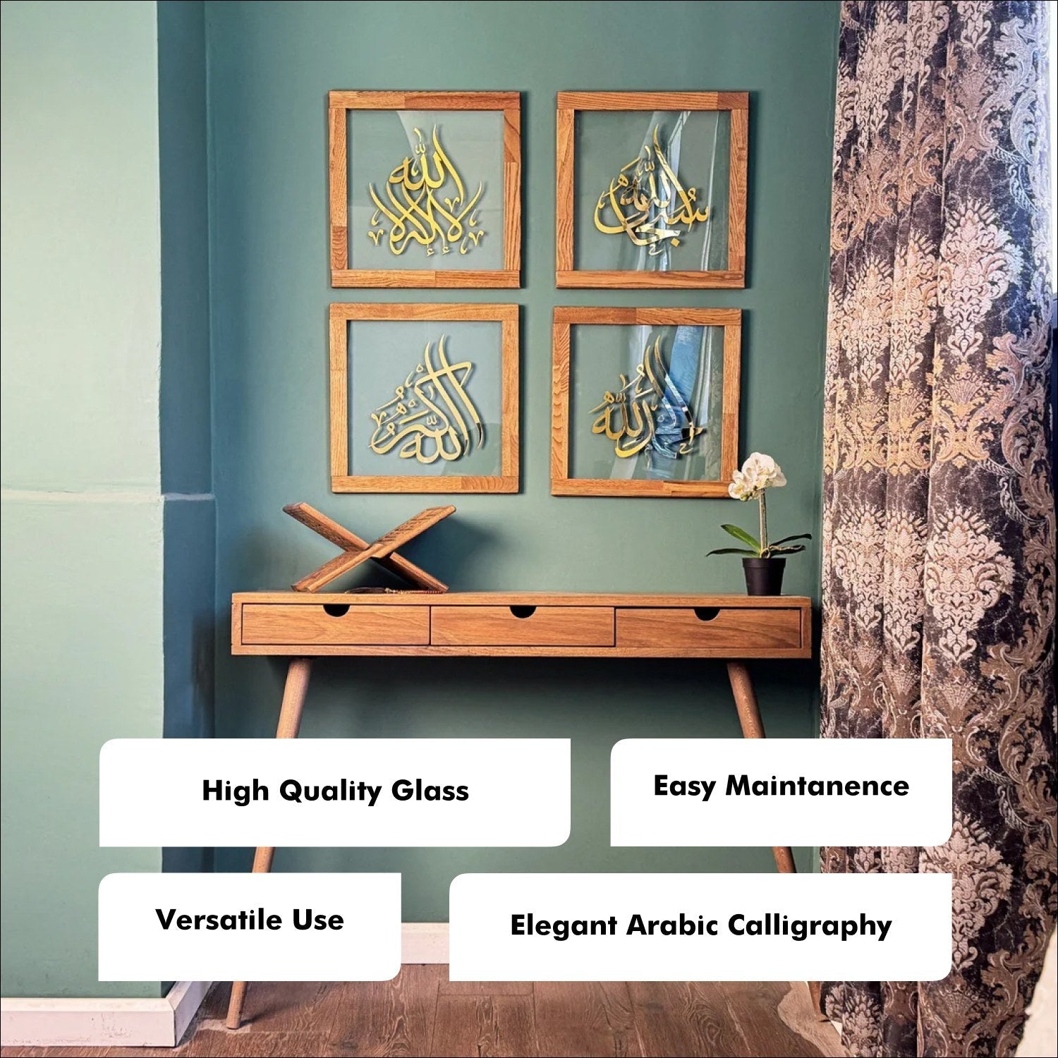 Add a serene and meaningful touch to your home with our 4 Dhikr Set Islamic Glass Wall Art, which beautifully displays the sacred phrases: Subhanallah, La Ilaha Illallah, Alhamdulillah, and Allahu Akbar.