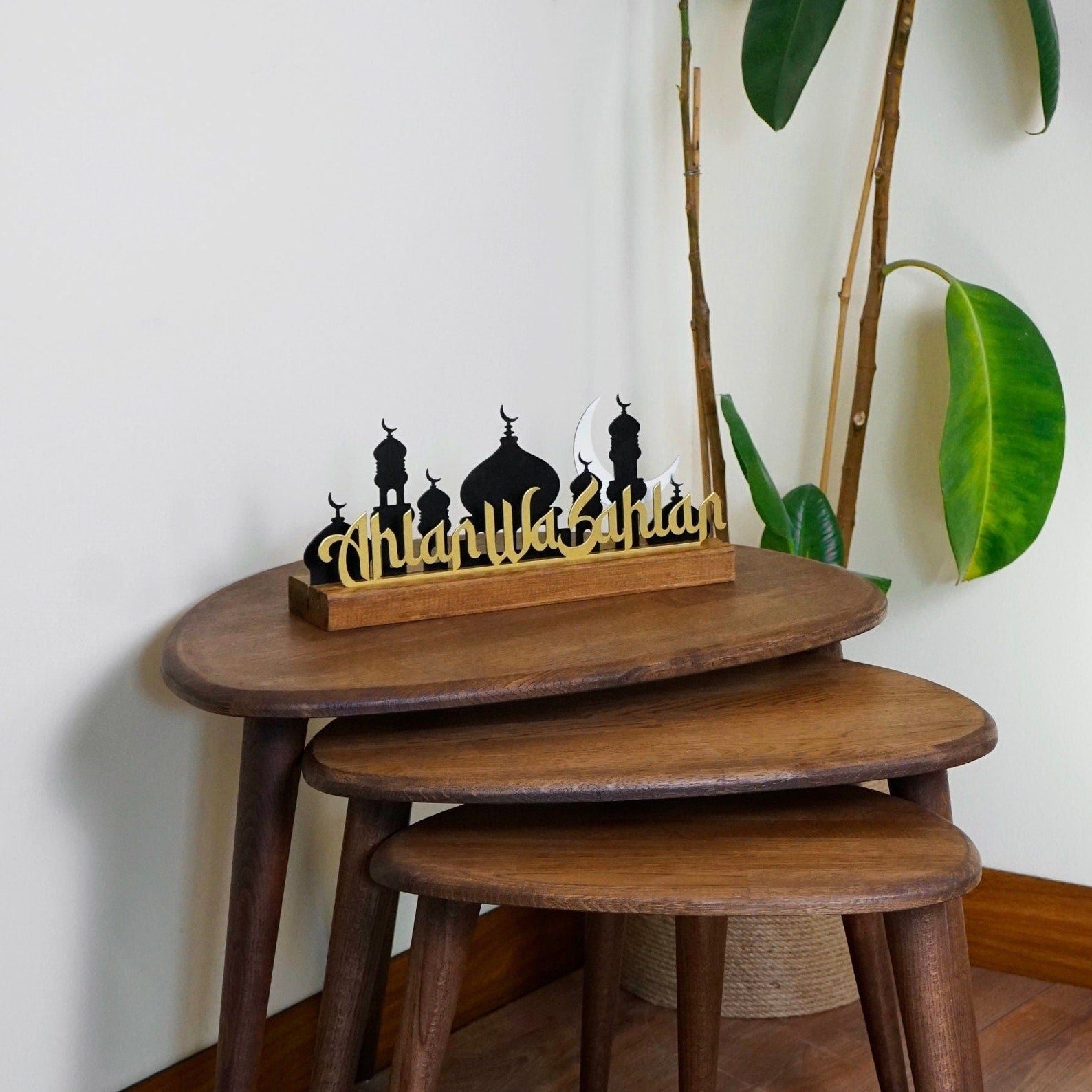 This splendid piece, showcasing Islamic calligraphy intertwined with the iconic imagery of Hagia Sophia and a mosque, is a masterpiece of Islamic art. It not only welcomes guests with its heartwarming greeting but also serves as a striking addition to Islamic home decor, embodying the grandeur of Islamic wall art. Ideal as a Muslim gift, this decor is a tribute to the rich heritage celebrated in Quran wall art. Enhance your Ramadan decorations and celebrate Eid Mubarak with a touch of elegance that resonates with faith and tradition. This set is also an ideal Ramadan decor for your walls. See other Islamic Table Decor by clicking here!