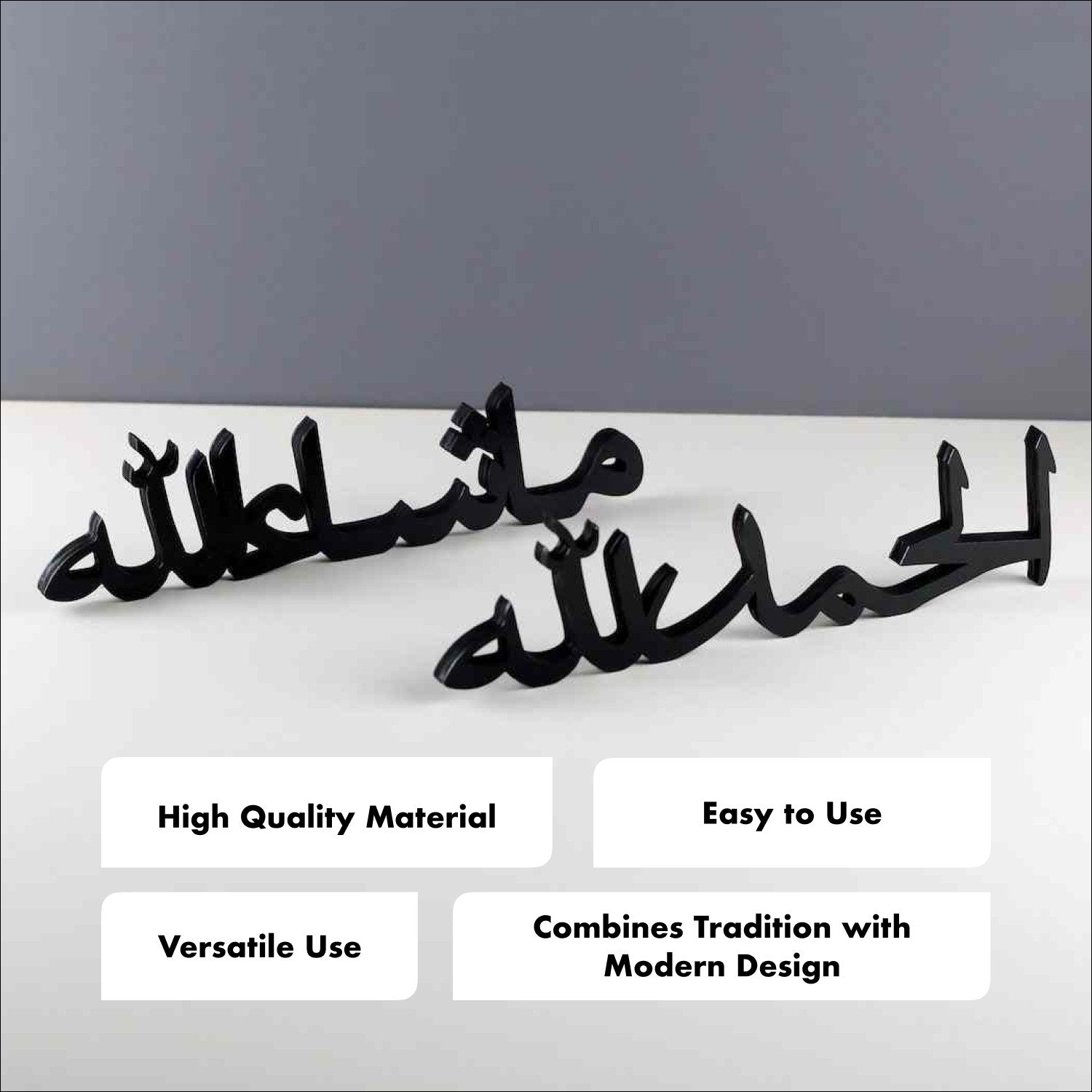 Adorn your space with the spiritual elegance of our Bismillah, Alhamdulillah, MashAllah Arabic Islamic Tabletop Art Decor.