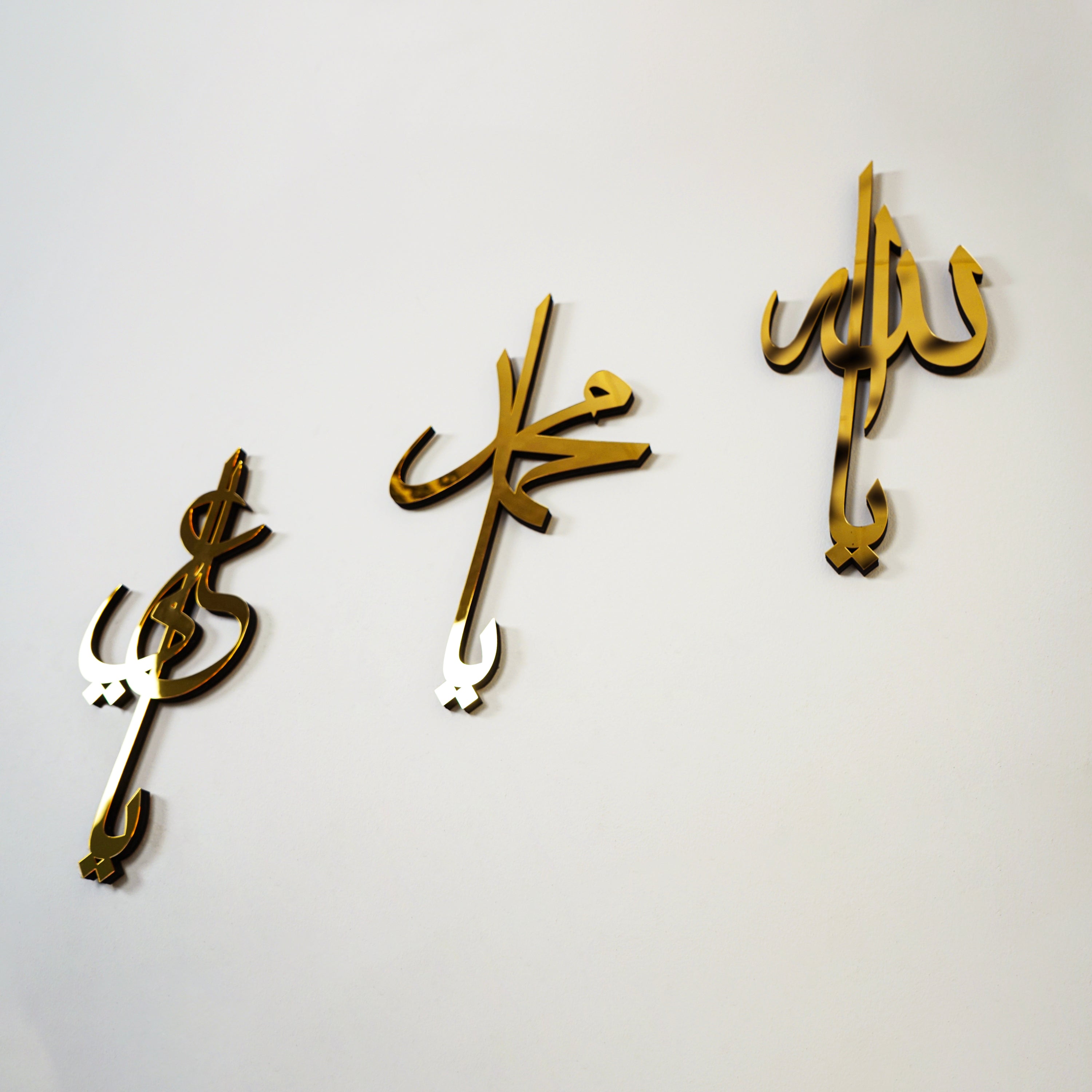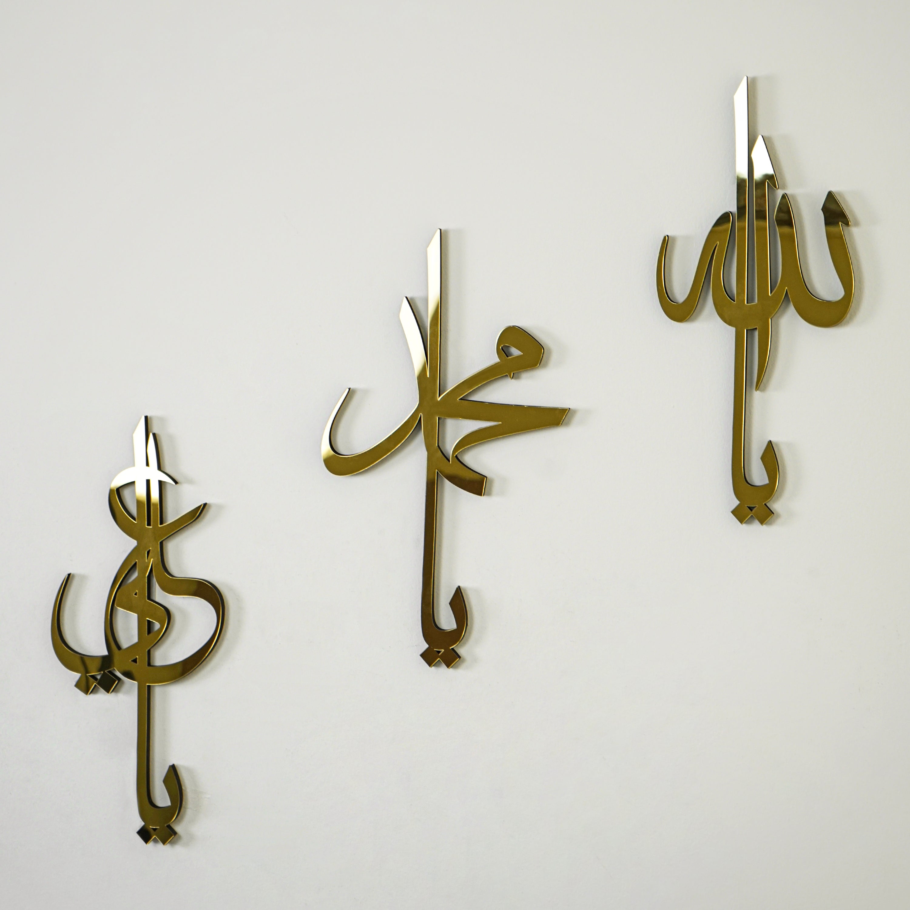 Experience the timeless elegance with our Allah (SWT) Muhammad (PBUH) Hazrat Ali (RA) Names Wooden Islamic Wall Art, where each stroke of Islamic calligraphy unfolds a story steeped in the rich heritage of the Quran.