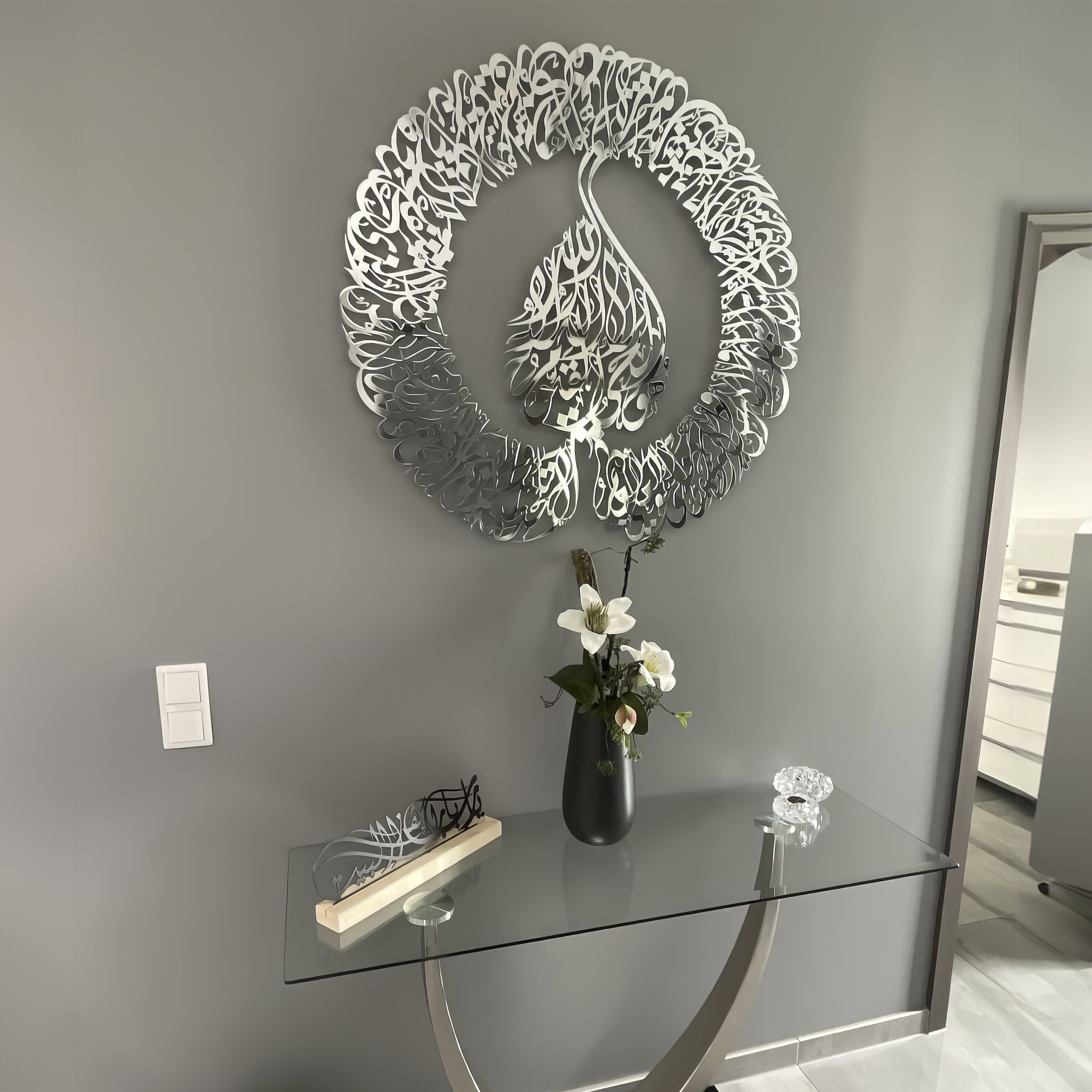 Step into our Islamic Wall Art Store for an enchanting array of decor options. Here, you'll find a splendid assortment of Arabic calligraphy and Islamic art, featuring both expansive metal wall pieces ideal for living rooms and eye-catching outdoor artworks. Our decor offerings, ranging from the enduring elegance of metalwork to the unique allure of glass art, are designed to enrich any environment with an Islamic touch of sophistication. These pieces are superb for elevating your Islamic home decor or as meaningful gifts for Muslim loved ones. Our collection is particularly fitting for Ramadan and Eid, bringing a touch of spiritual grace to any setting.
