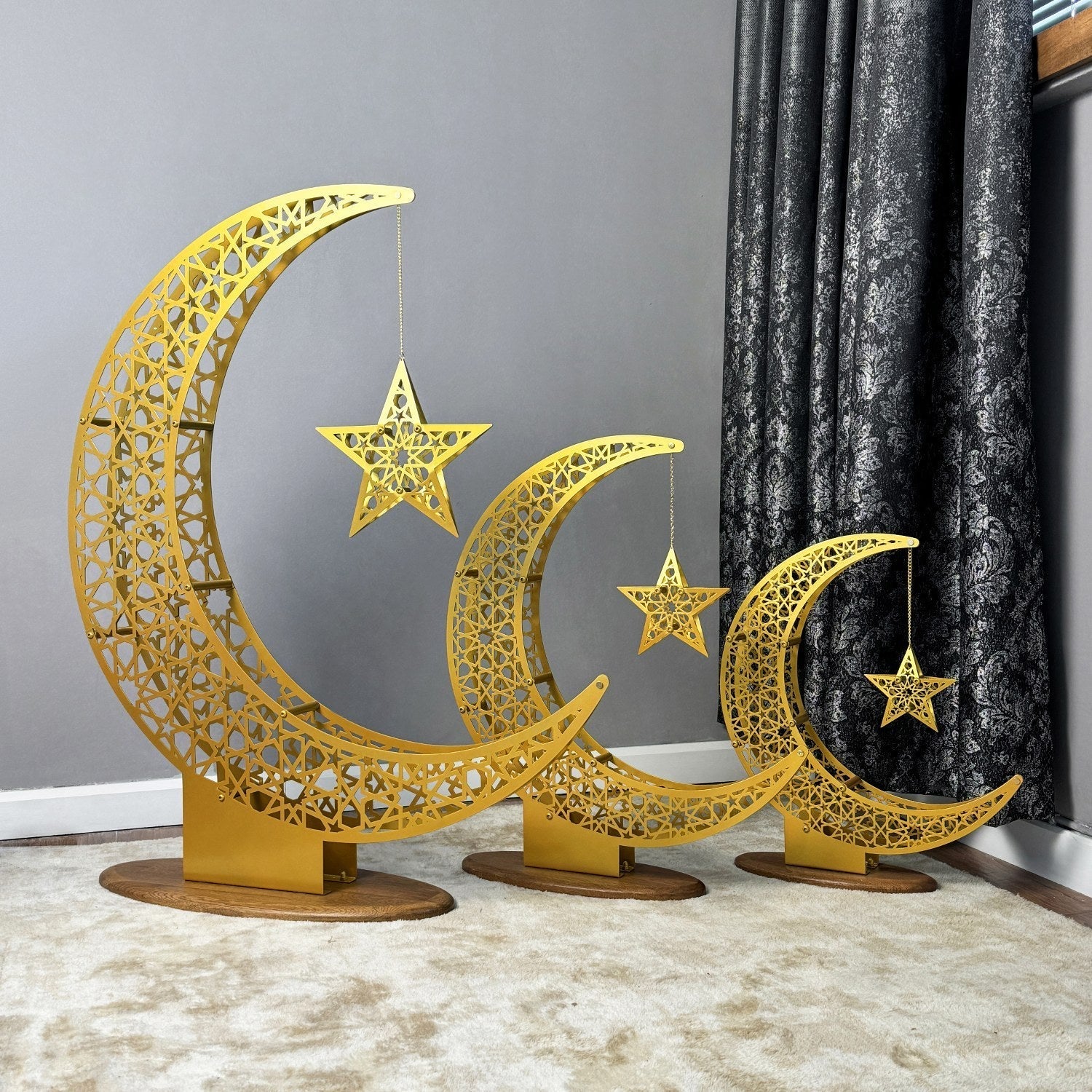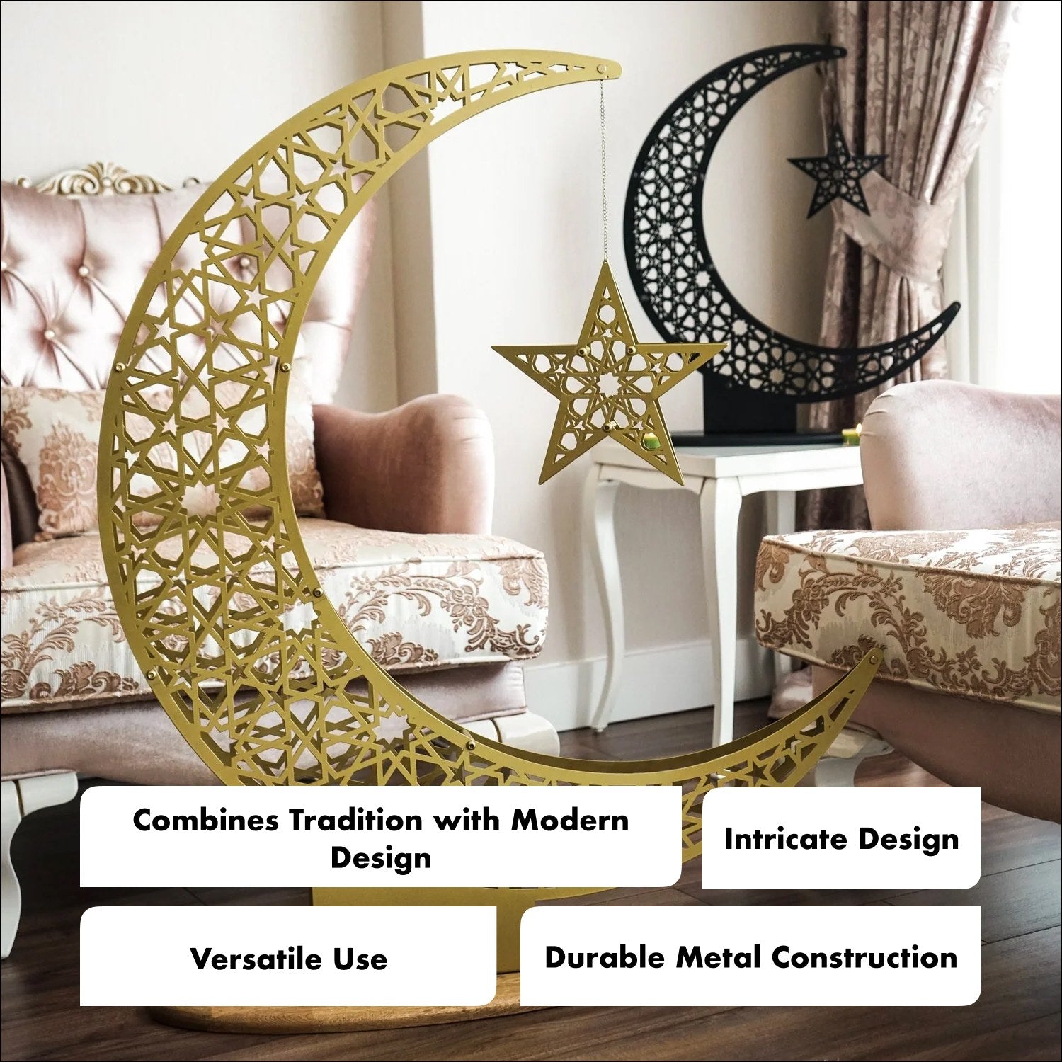 Illuminate your home with the Crescent & Star Ramadan Decor, a masterpiece of metal Islamic home decoration that beautifully blends tradition with contemporary design.