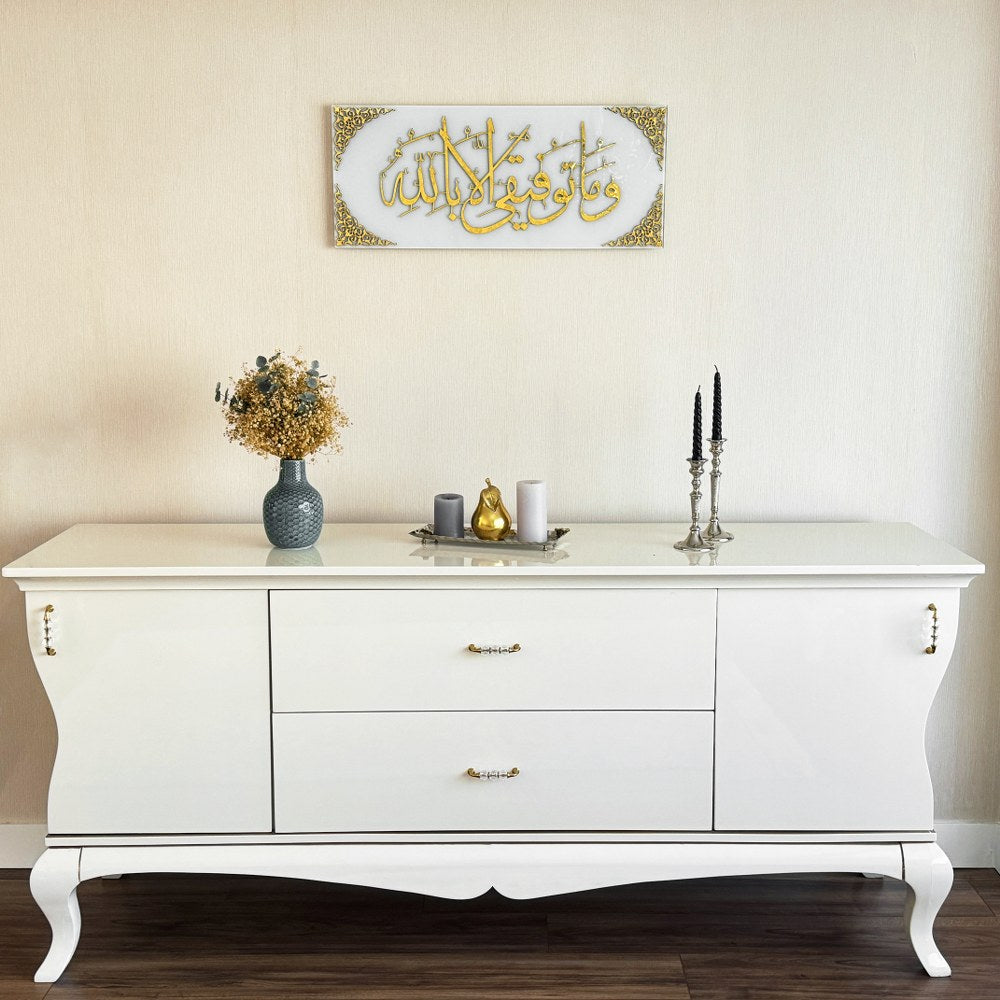 Infuse your home with the inspirational essence of Dua For Success from Surah Hud, verse 88, elegantly portrayed in our Tempered Glass Islamic Wall Decor.