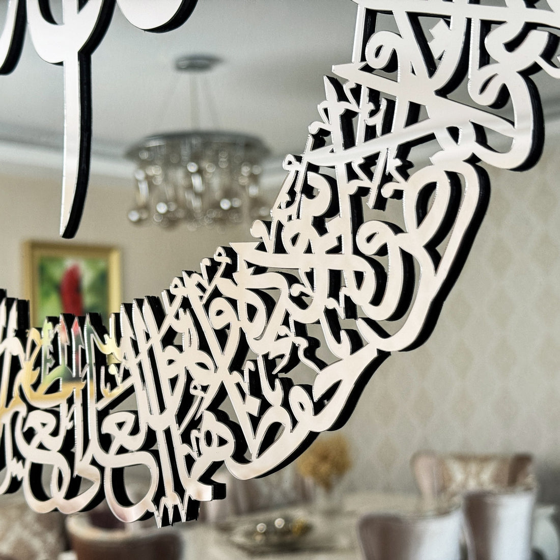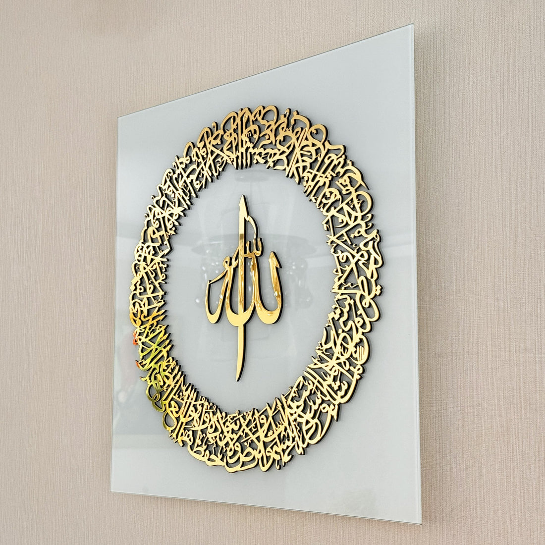 This piece beautifully captures the essence of the Ayatul Kursi verse, renowned for its profound meaning and protective power in Islamic tradition. Ideal for adding a touch of serene sophistication to any room, this artwork is a testament to the rich heritage of Islamic art, blending seamlessly with both contemporary and traditional Islamic home decor. Perfect as Ramadan Decor or as a treasured Muslim gift, it also beautifully complements Eid Mubarak celebrations. See other Glass Islamic Home Decors by clicking here!