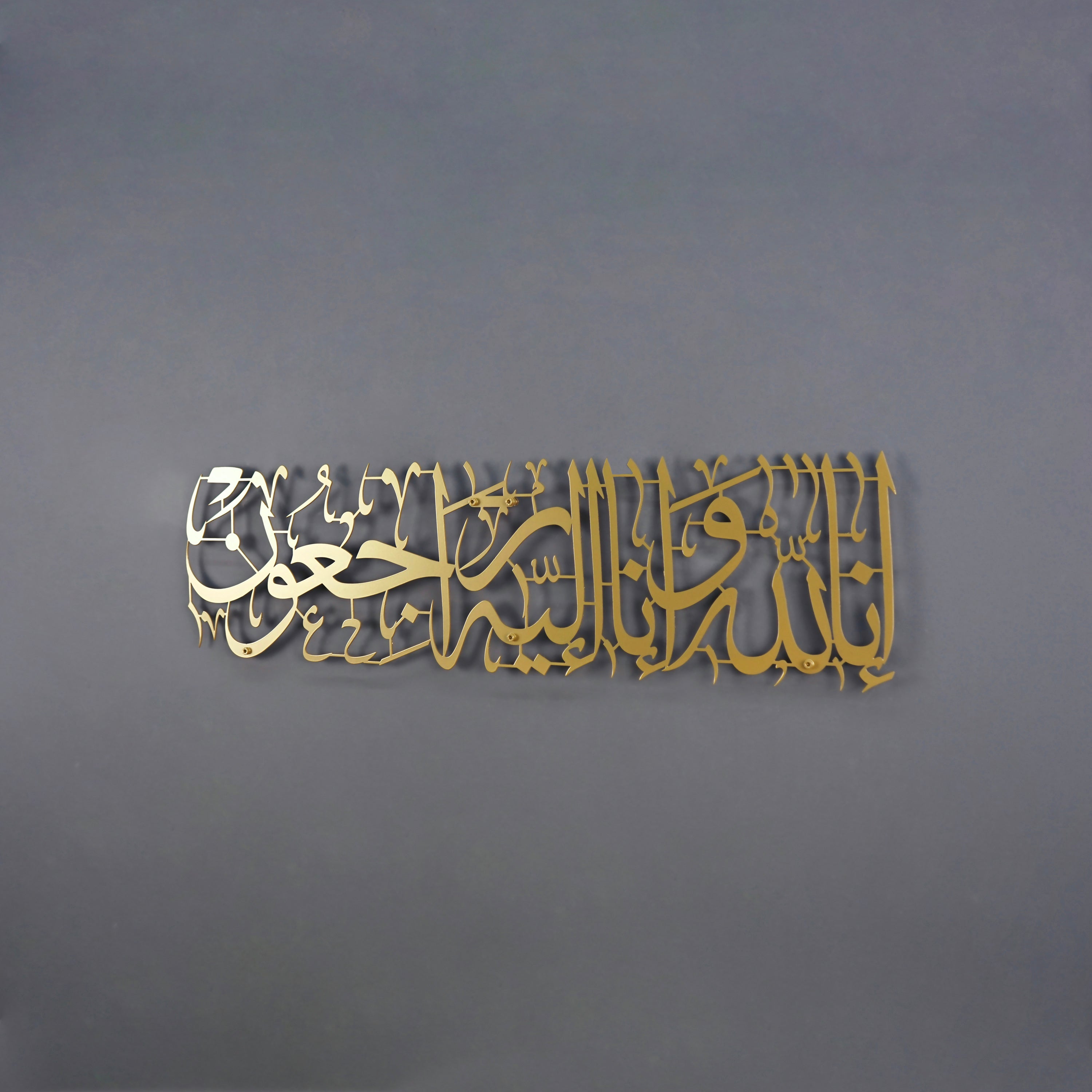 Nestled within the profound essence of acceptance and surrender to Allah's will, our Inna Lillahi Baqarah 156th Metal Islamic Wall Art captures the soulful depth of Islamic calligraphy.